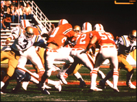Late in the first quarter, UCLA punted the ball to Miami receiver Eddie Brown. The All-American took the kick back 68 yards for a touchdown giving the 'Canes their first lead of the game.
